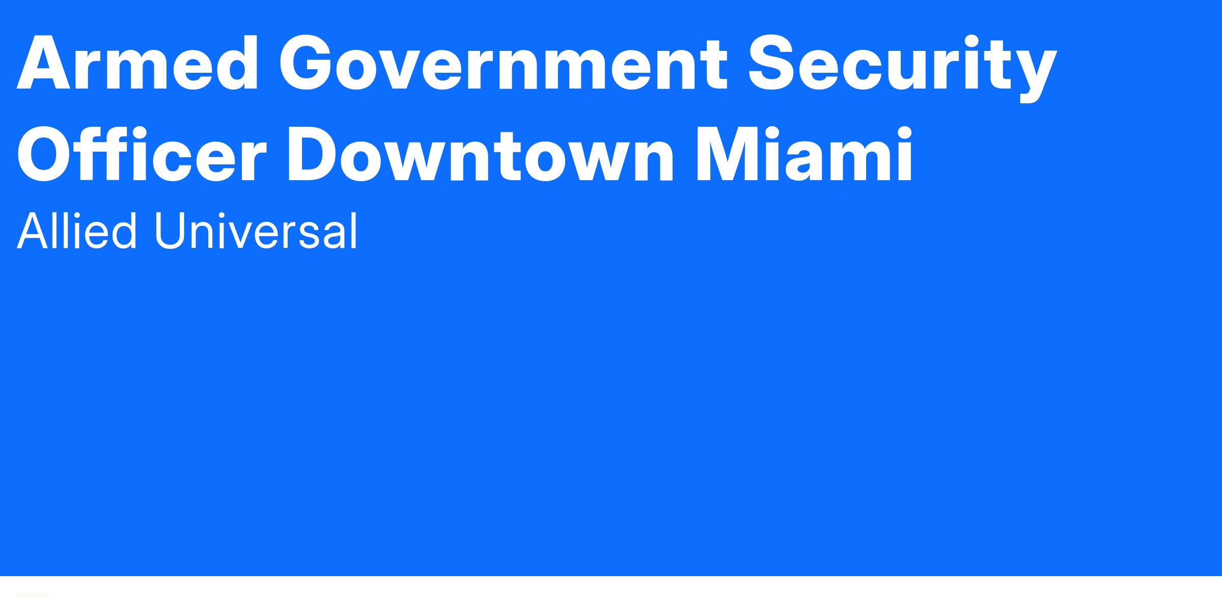 As a Security Professional - Armed Law Enforcement in Miami, FL, you will serve and safeguard clients in a range of industries such as Government and more .