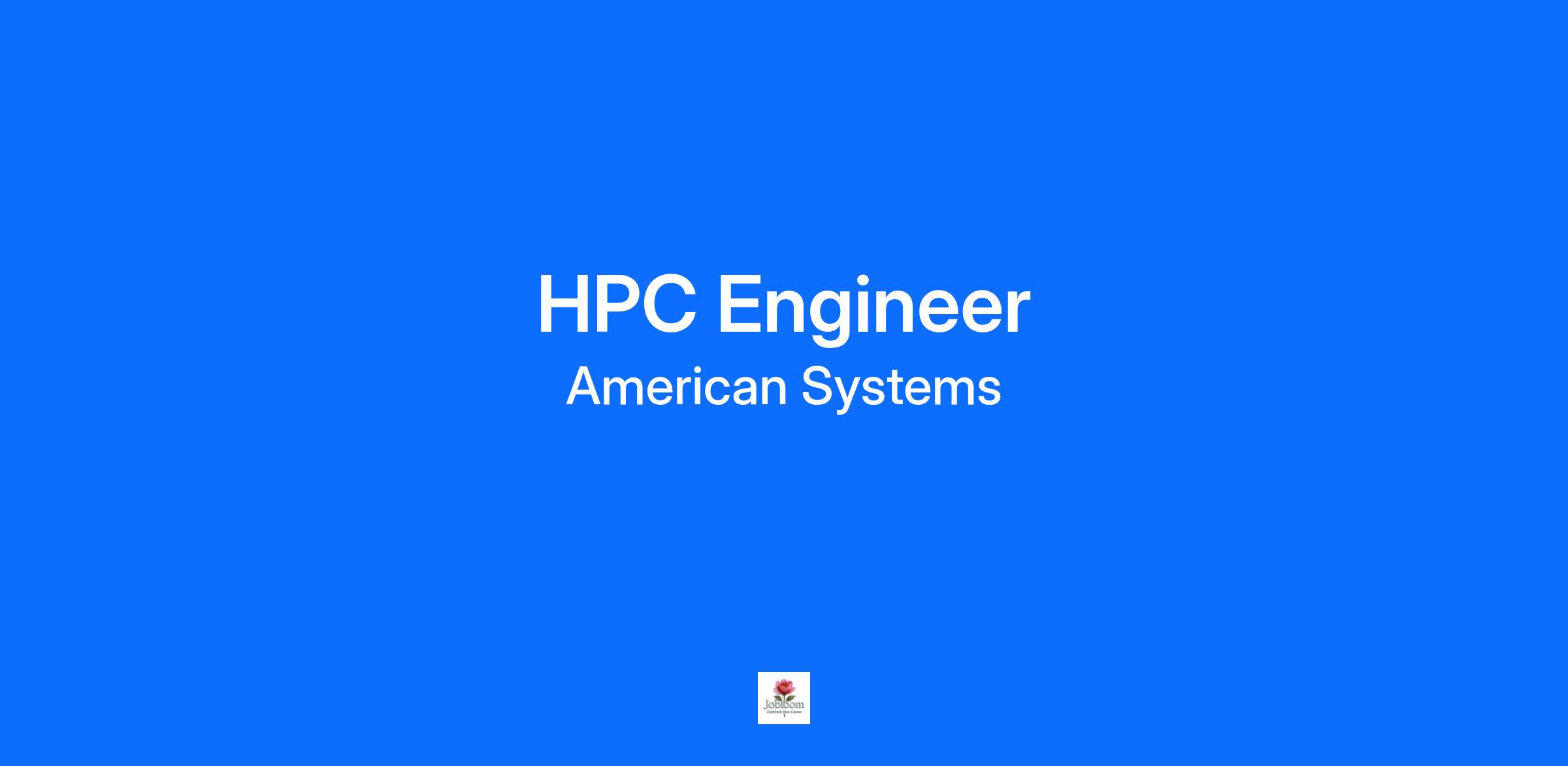 THIS POSITION COMES WITH A 10K SIGNING BONUS! As an HPC Engineer with AMERICAN SYSTEMS you will have an opportunity to do the followingl: