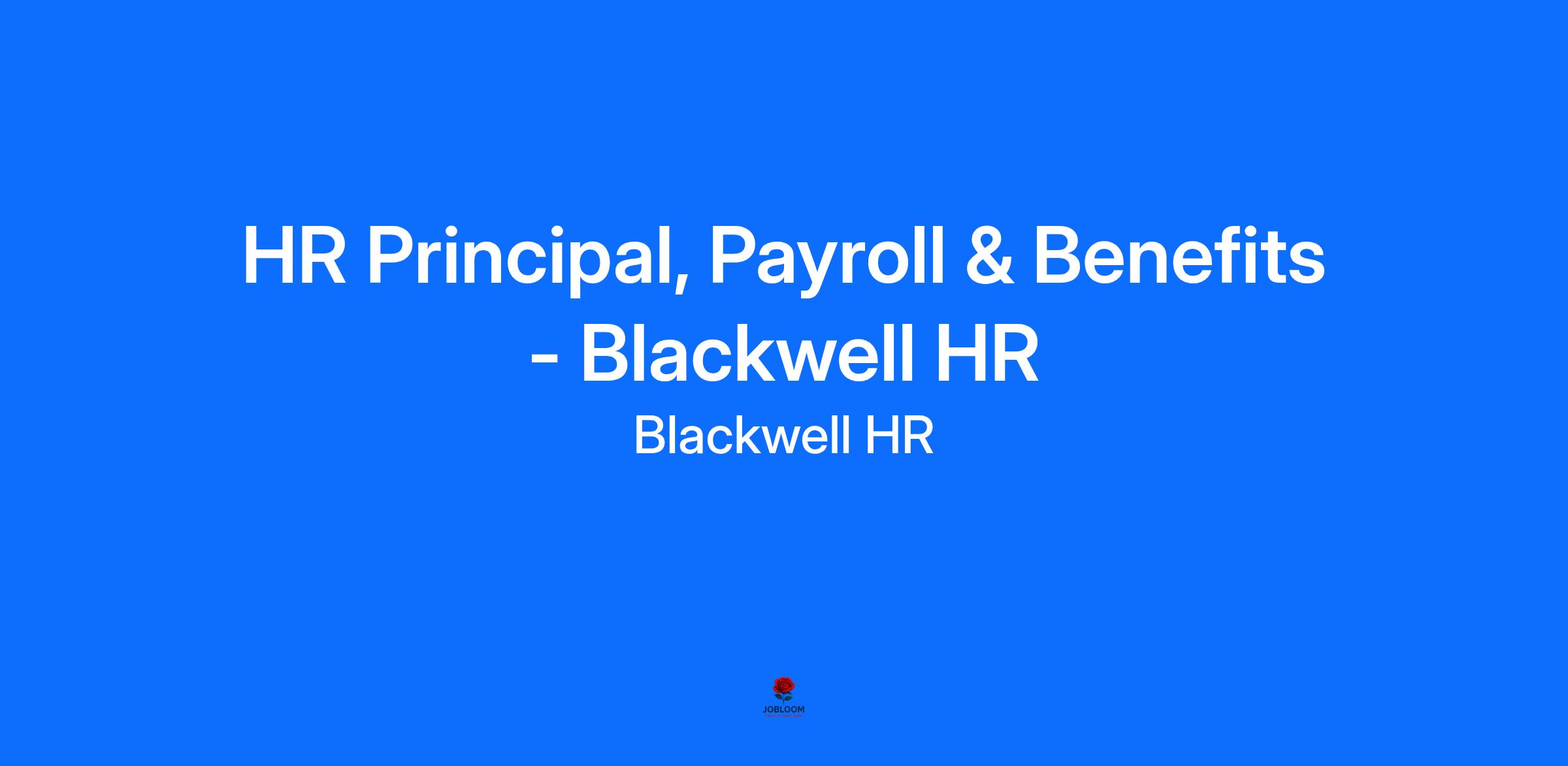 Blackwell HR is Now Hiring:Human Resources Principal Consultant, Payroll & Benefits (Full-Time, Remote)