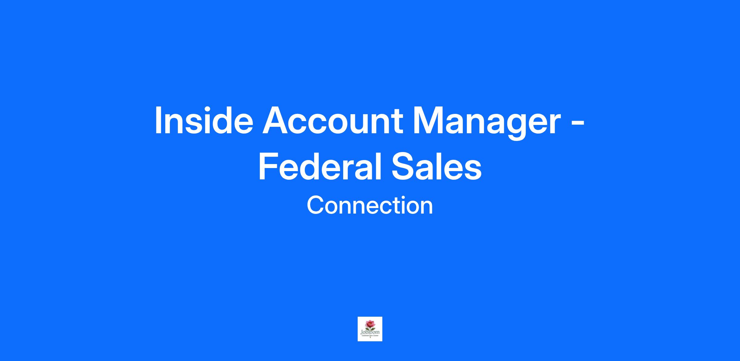 Connection, a Fortune 1000 Global Technology Solutions Provider, is adding to our passionate sales team serving the IT needs of Federal Agencies and the US Military. With more than 25 years of service to the Federal Government, Connection is the proven, premier partner for procuring mission-critical IT solutions across the country with technology that enhances growth, elevates productivity, and empowers innovation. The Inside Account Manager for Federal Sales is an opportunity exercise your sales skills with your own customers and also support members of the sales team with day-to-day activities and customer requests. The Inside Account Manager is an integral member of the sales team and assists in sales growth and account retention. If you want to join our culture of integrity, teamwork, and mutual success, we would love to speak with you!