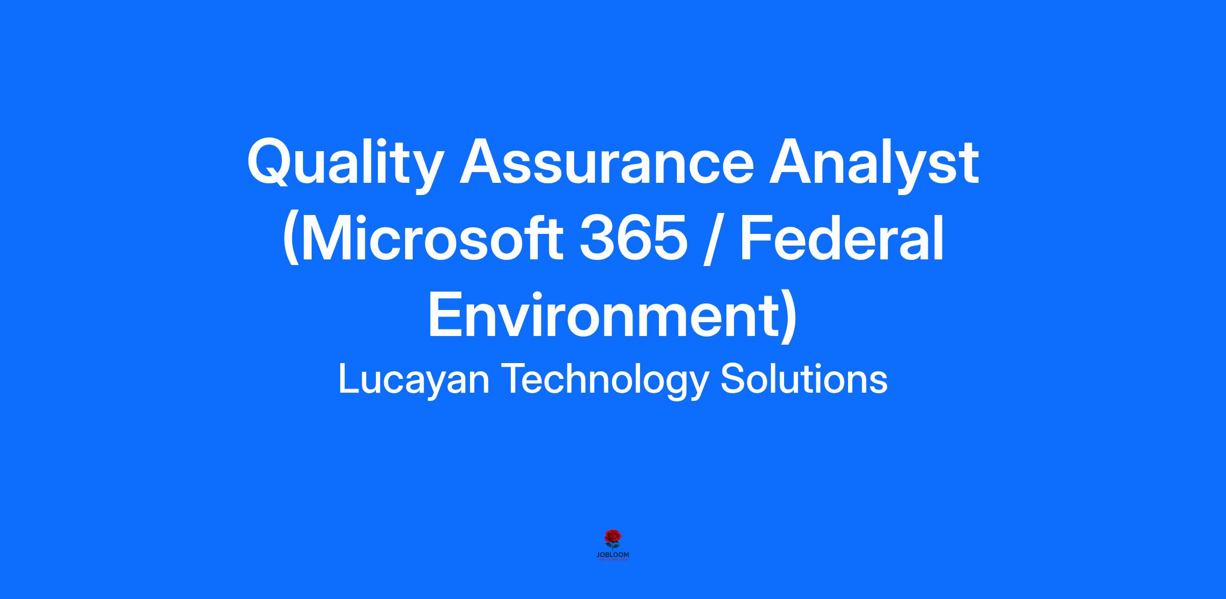 Employment Type: Full-TimeOverviewLucayan Technology Solutions is seeking a detail-oriented Quality Assurance Analyst to support quality assurance and compliance activities for the IRS Microsoft 365 (M365) environment. The ideal candidate will ensure that all deliverables meet project standards, federal compliance requirements, and IRS-specific traceability needs. This role emphasizes continuous improvement, documentation, and collaboration with technical teams and IRS stakeholders.Key Responsibilities - Develop, implement, and execute quality assurance processes for M365 services and project deliverables.