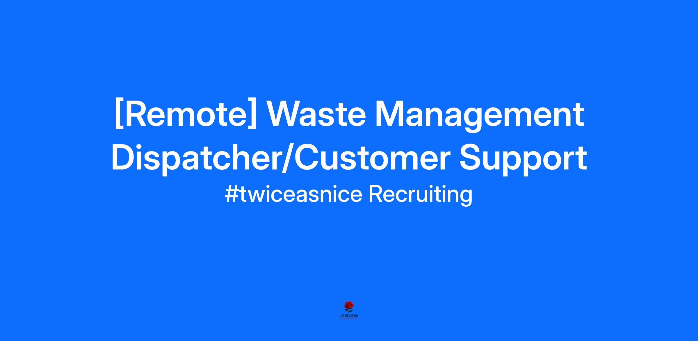 [Remote] Waste Management Dispatcher/Customer Support