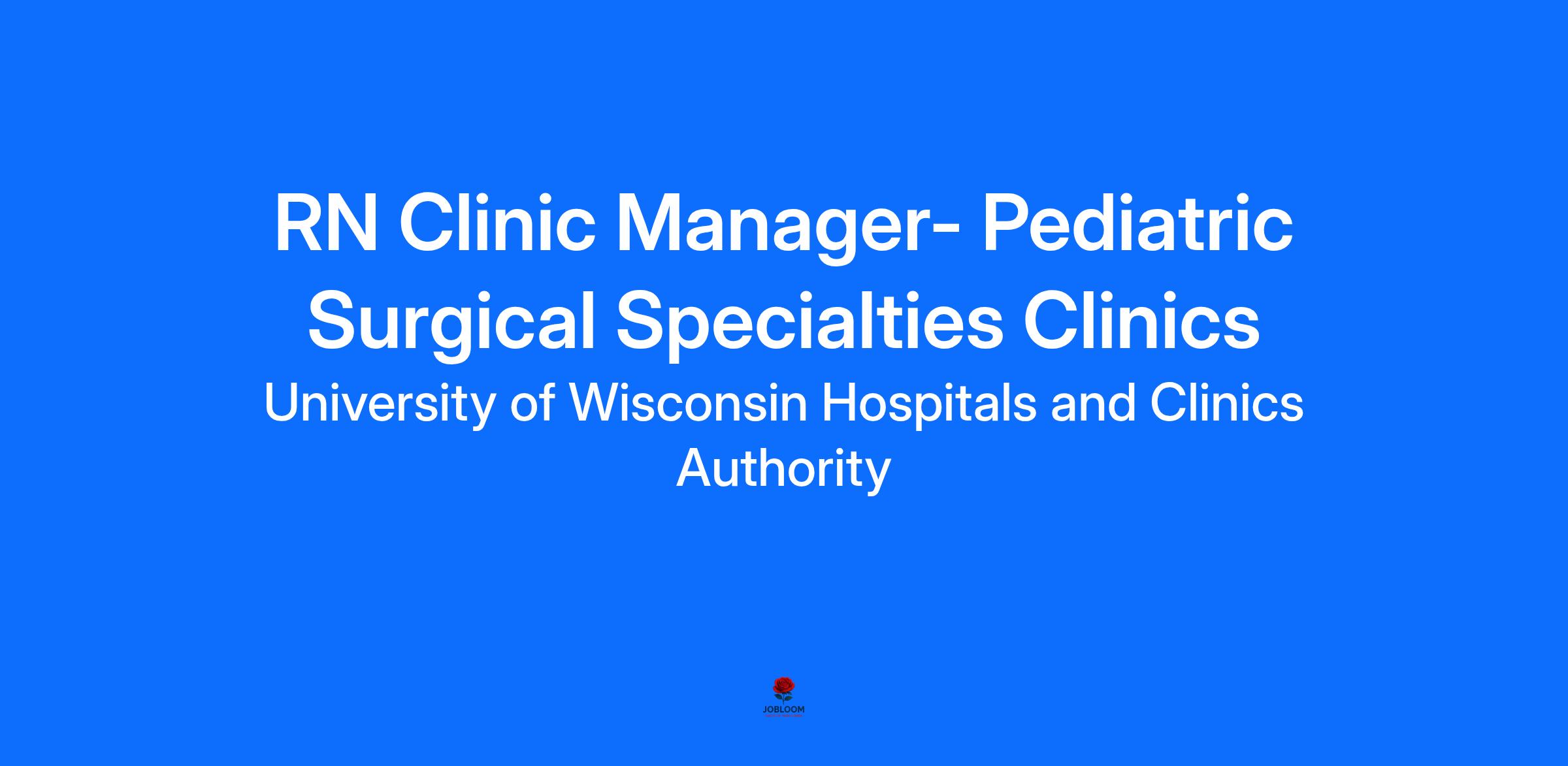 We are seeking an RN Clinic Manager – Pediatric Surgical Specialties Clinics to: