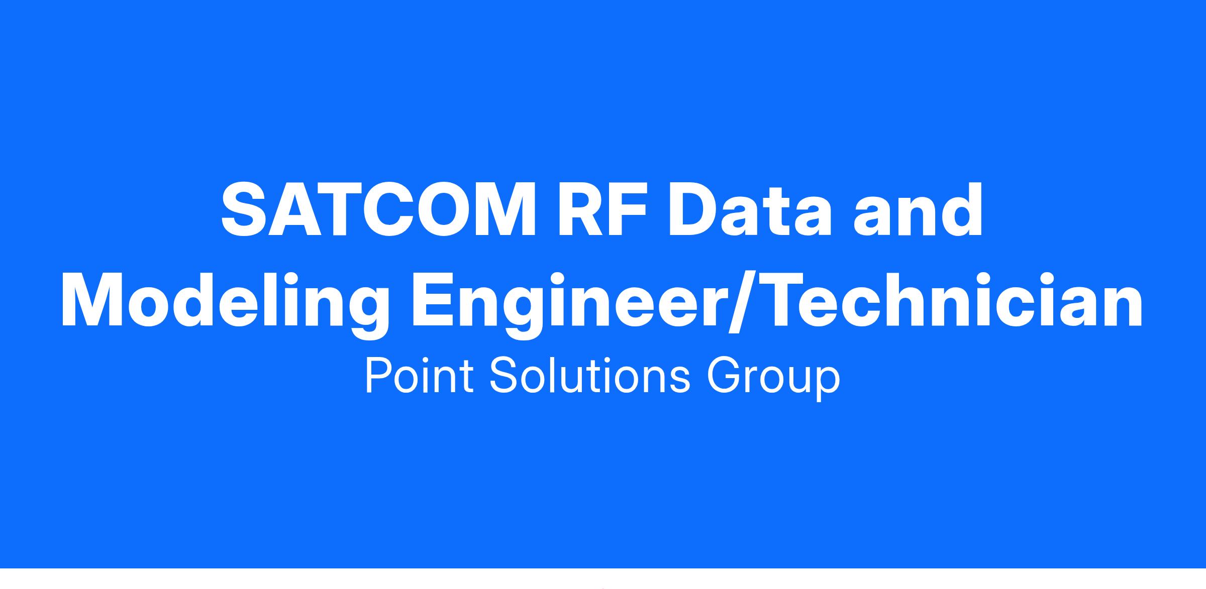 Join Point Solutions Group and our Federal Services Team providing engineering support to SpOC as part of a phase III SBIRS program. We're hiring a SATCOM RF Data and Modeling Engineer/Technician to work on a 2 person team out at Peterson AFB.