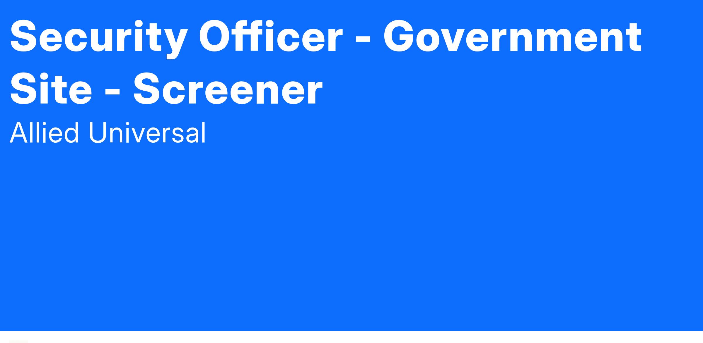 As a Screener in a government location, you will play a key role in helping to maintain a secure environment for all individuals on site. Your responsibilities will include monitoring entry points, conducting screening procedures, and interacting with visitors and staff to provide a welcoming and professional presence. You will help to deter security-related incidents by remaining visible and attentive, while also delivering exceptional customer service and clear communication. At Allied Universal, we value agility, reliability, and innovation, and we are committed to putting people first. Join our team and contribute to a culture built on teamwork and integrity, where your dedication to service makes a meaningful impact every day.