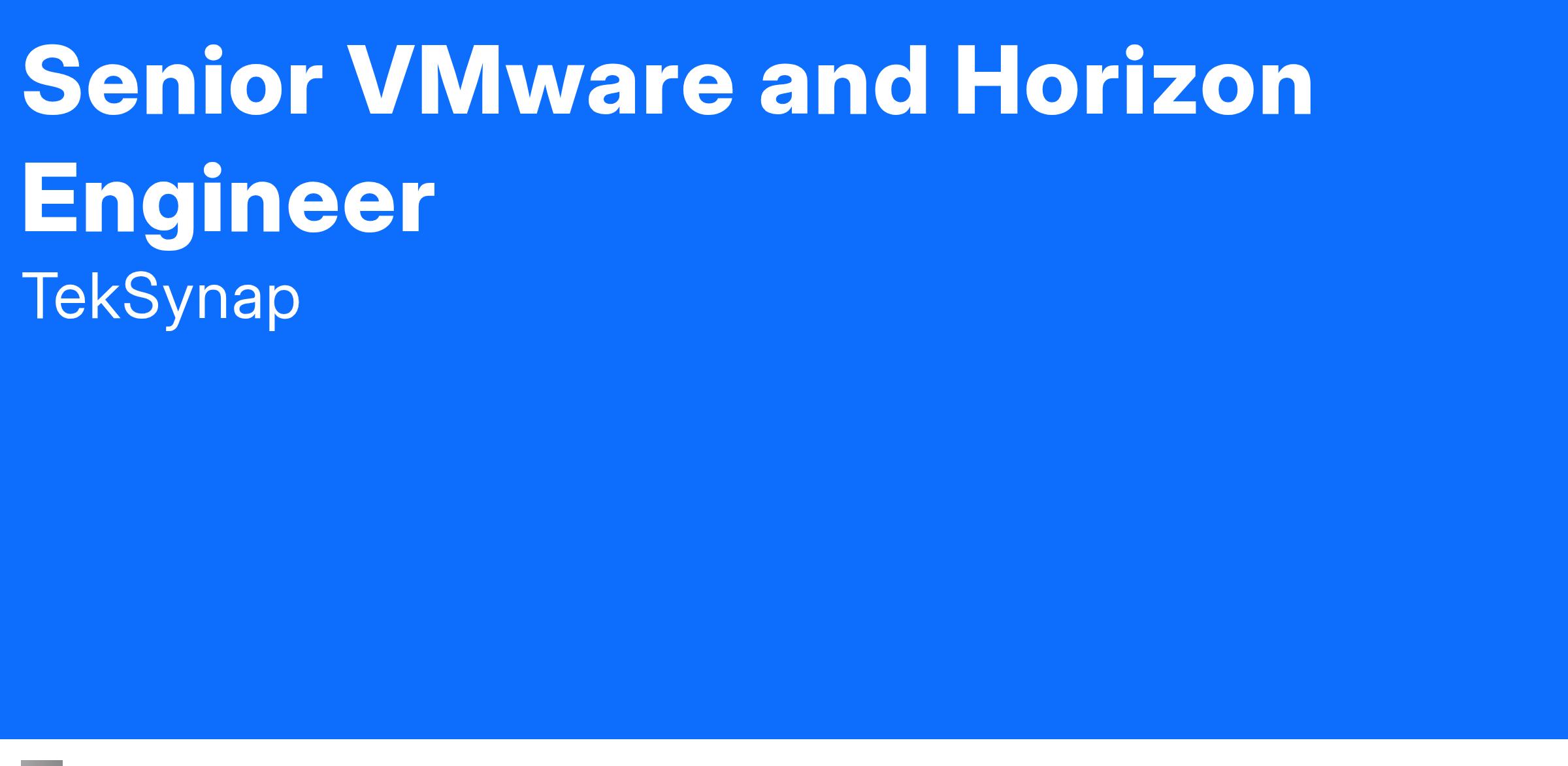 We are seeking a Senior VMware and Horizon Engineer to join our team at Joint Base Andrews, MD. The position requires extensive hands-on experience with enterprise VMware Horizon VD coupled with some project management skills. This network classified and unclassified VMware infrastructure.