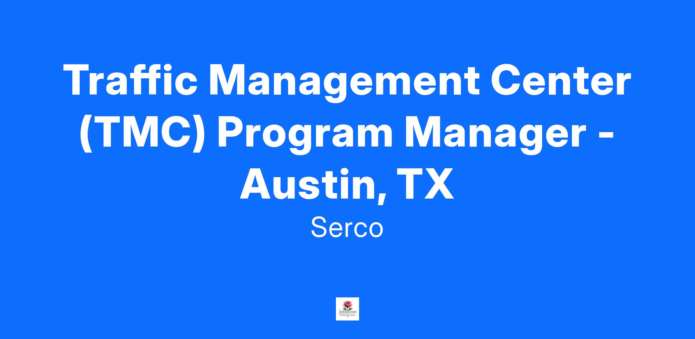 Serco is looking for an experienced candidate who has extensive knowledge of TMC Operations to lead a team in Austin, Texas. You will lead a team that works closely with state employees, local law enforcement and other first responders daily. As the Program Manager you will provide firsthand knowledge of project management and TMC operations best practices throughout the duration of the project to ensure success.