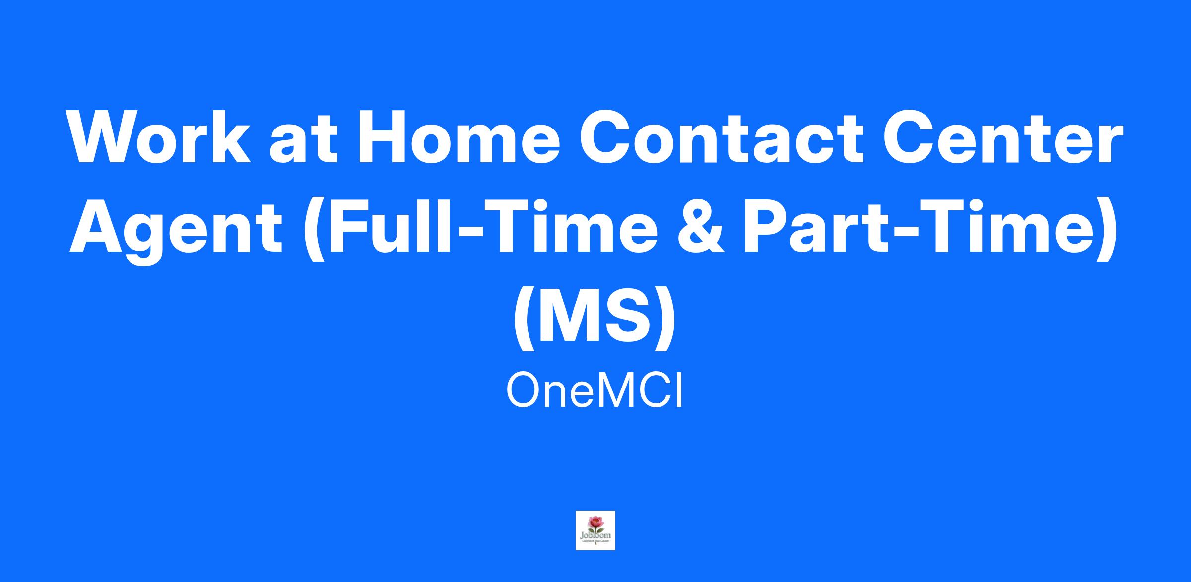 Work at Home Contact Center Agent (Full-Time & Part-Time) (MS)